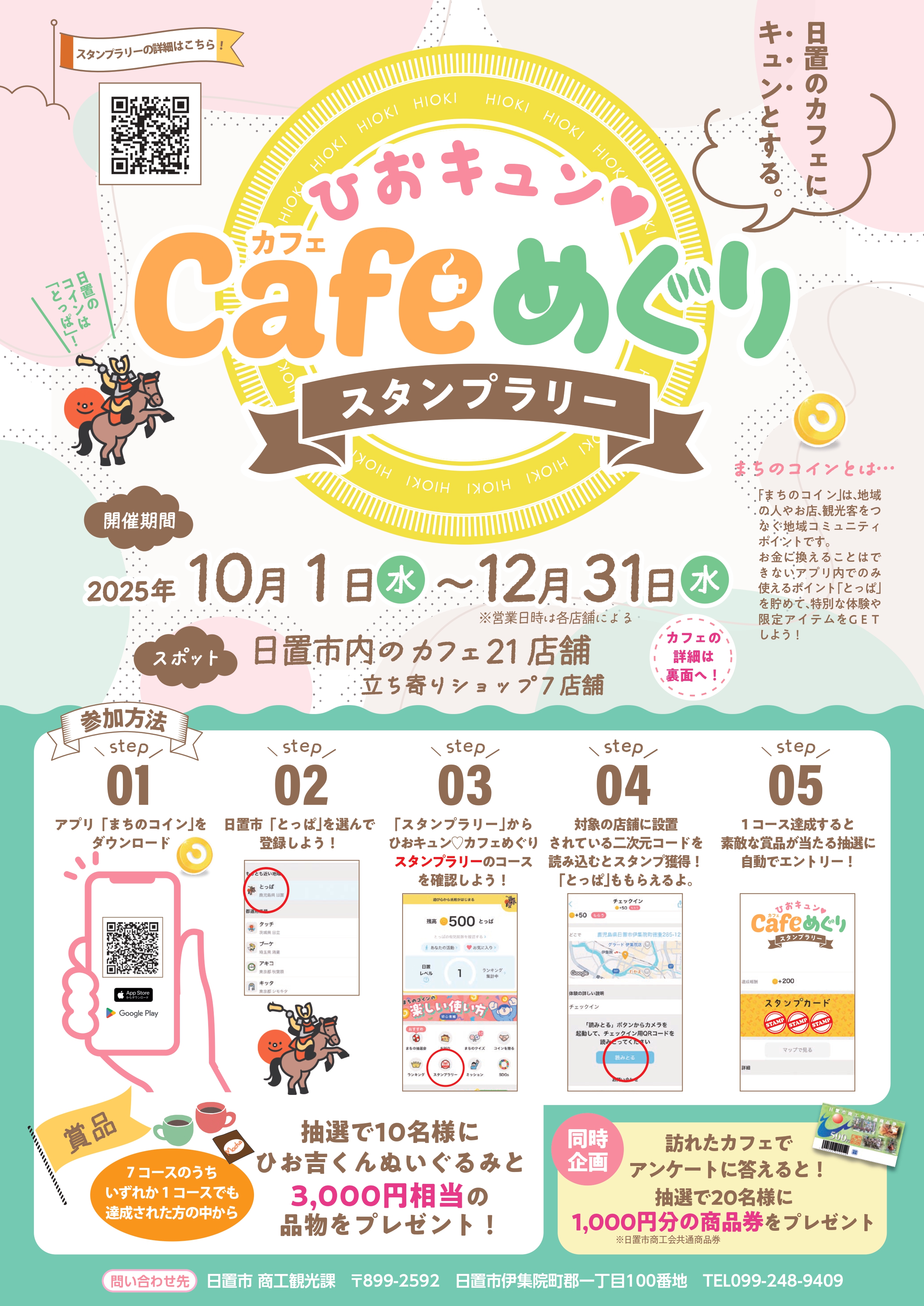 カフェ21店舗と立ち寄りショップ7店舗が参加するデジタルスタンプラリーです。