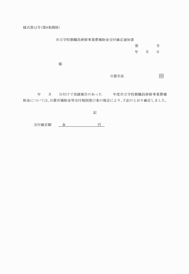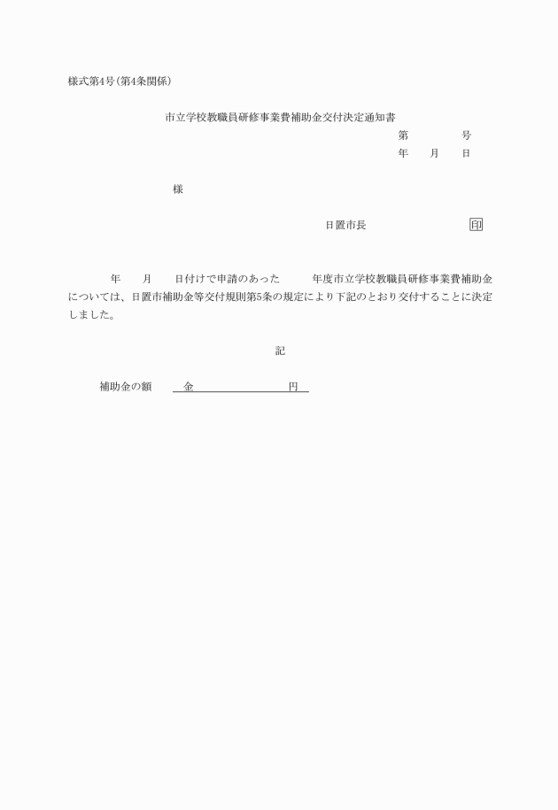 第1条 市長は、日置市立学校の学校教育の充実及び振興に資するため、予算の定めるところにより学校教育関係団体及び教職員(以下「団体等」という。)に対し予算の範囲内において補助金を交付するものとし、その交付については、日置市補助金等交付規則(平成17年日置市規則第45号。以下「規則」という。)に定めるもののほか、この告示に定めるところによる。