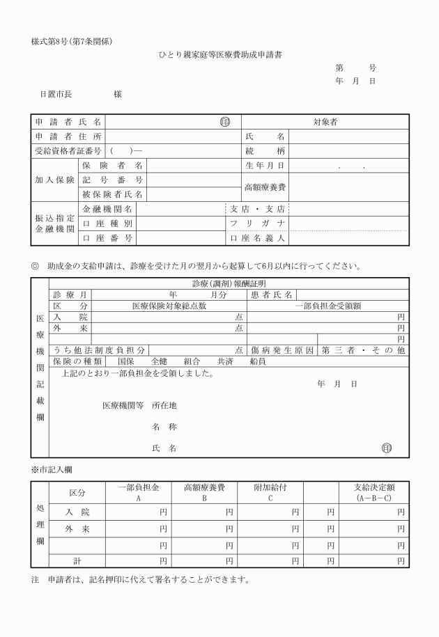 ○日置市ひとり親家庭等医療費助成条例施行規則