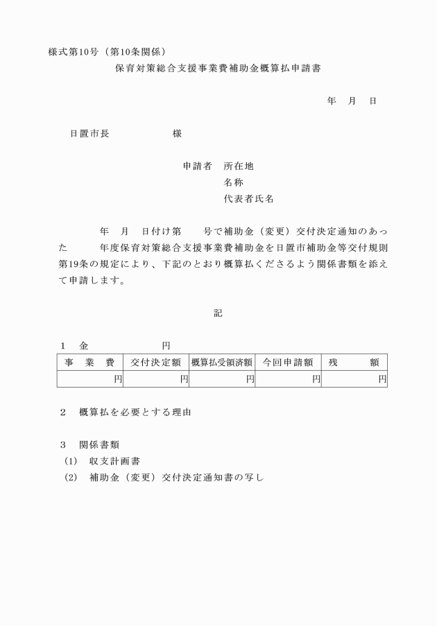 (1) 保育対策総合支援事業費所要額調書(様式第2号)